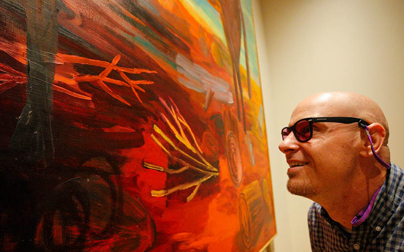 Enchroma Color Blind glasses are available to borrow at the Admission Desk, free of charge, to enhance color vision for most people with red-green color blindness.