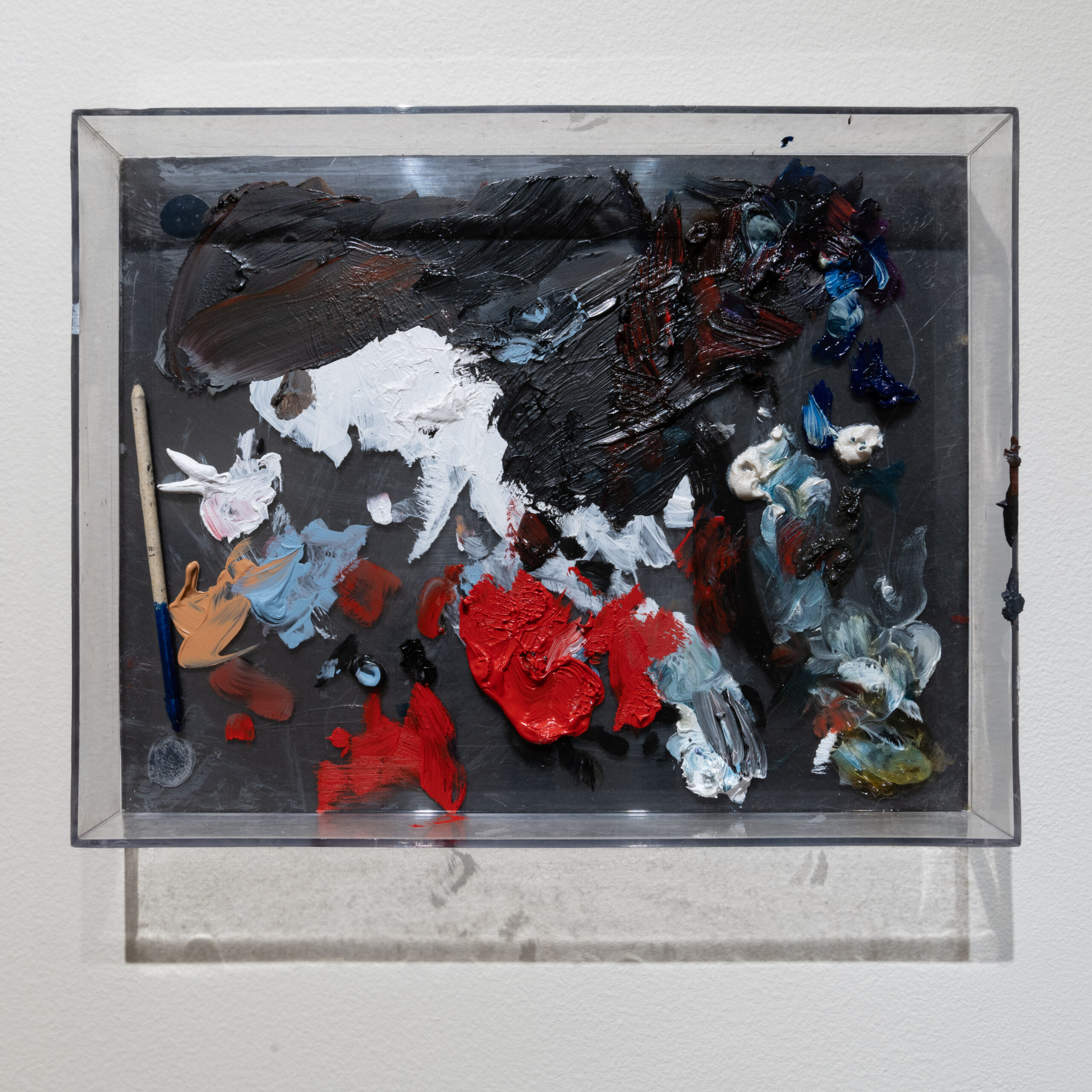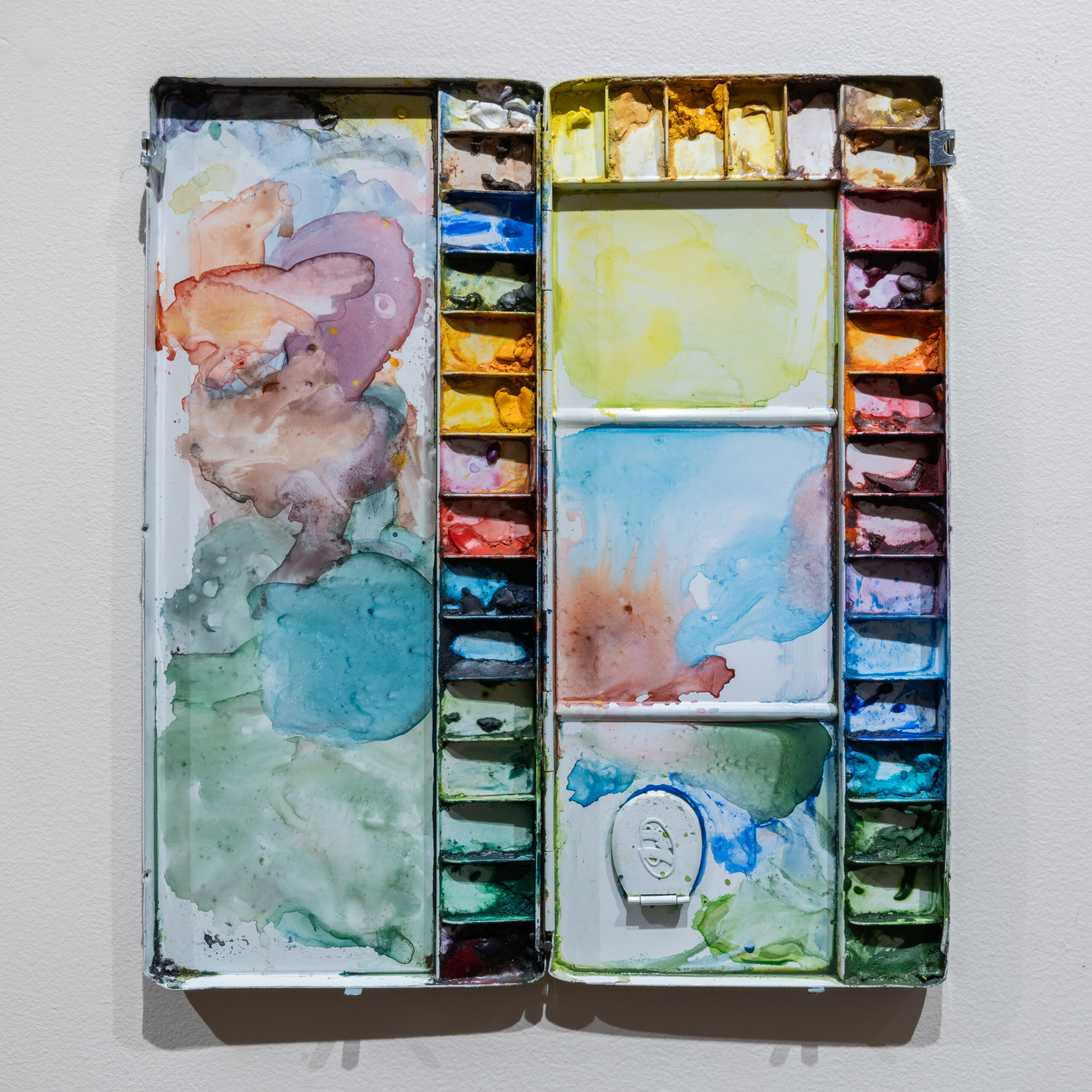 These palettes and work surfaces—ranging from the meticulously tidy to the beautifully chaotic—reveal the intimate, personal nature of each artist’s studio practice.